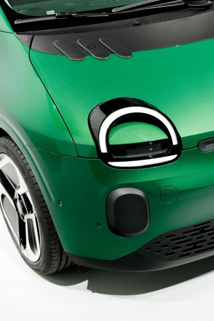 车身侧面,Twingo采用One-box造型设计,车轮尽量靠近车身边缘,以最大化扩展乘员舱空间。A柱与机盖的过渡流畅自然,不仅保持了侧面的简洁造型,还能有效降低风阻,提升续航里程。此外,新车还采用了隐藏式水切设计,进一步提升了外观的精致感。充电口则布置在车身右前翼子板处,充电便利性稍显逊色。
